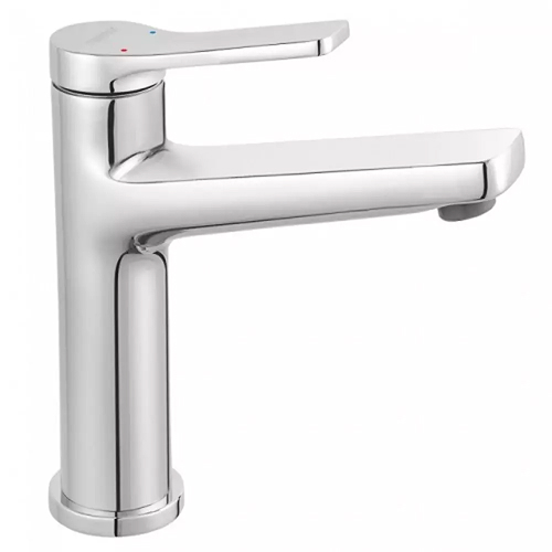 Смеситель предназначен для врезного монтажа на одно отверстие, оснащен фиксированным изливом средней длины и высоты, что делает его универсальным решением для большинства умывальников. Подключение осуществляется через гибкую подводку стандарта 3/8", шланги для подключения входят в комплект поставки.