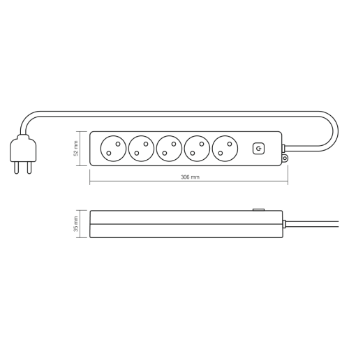 • Розміри: 306 х 52 х 35 мм