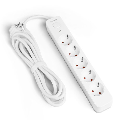 Подовжувач мережевий Videx Oncord з кнопкою з/з 5 постів (1.5 мм) 3 м білий
